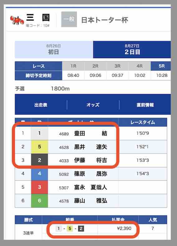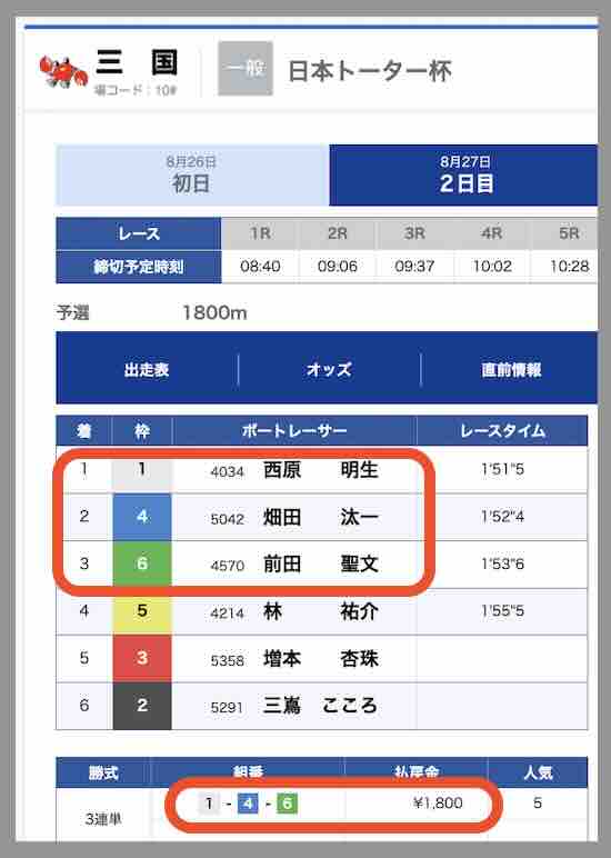 2本目の三国6Rのレース結果は18.0倍だったので、