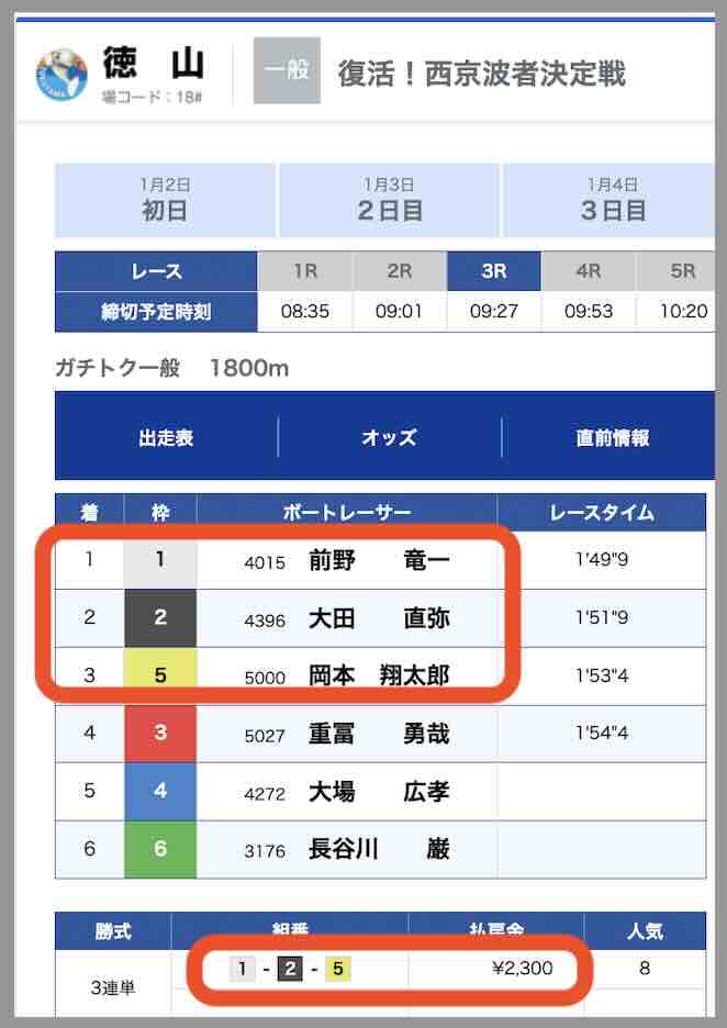 的中した1つ目の徳山3R