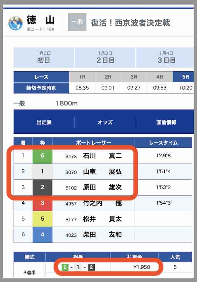 2本目の徳山5Rのレース結果は19.5倍だったので、