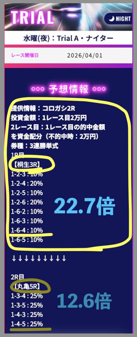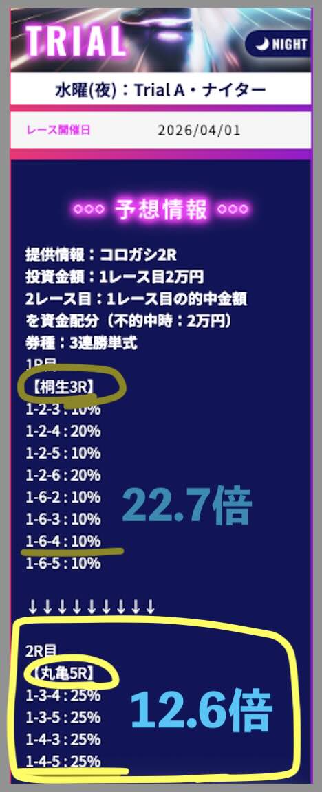 そんな事あったので、今回は参加せずに様子見てたら…的中実績きて…戸田は的中。62万の払戻。で、丸亀は…当然不的中。