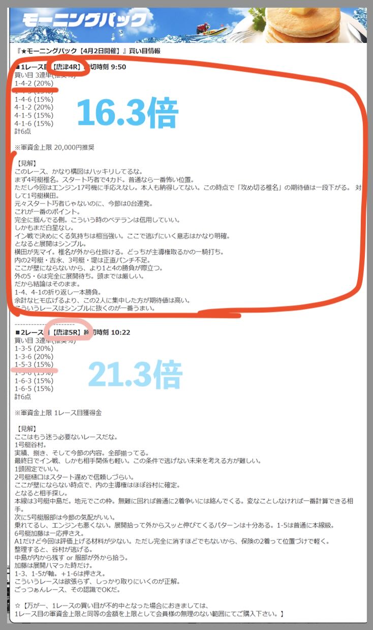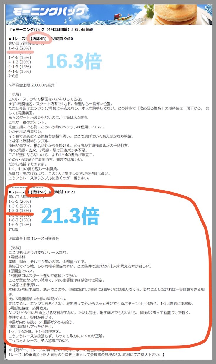 昨日の予想結果が良かったみたいなメールが来てたので初購入した。