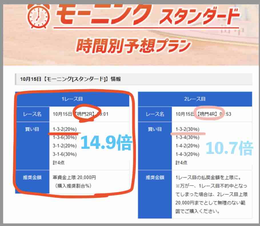 競艇トレジャーハンターで提供される無料予想(無料情報)の内容は、1日2レース(デイ・ナイター)の提供となり、券種は基本的に「3連単」単発の提供となる。