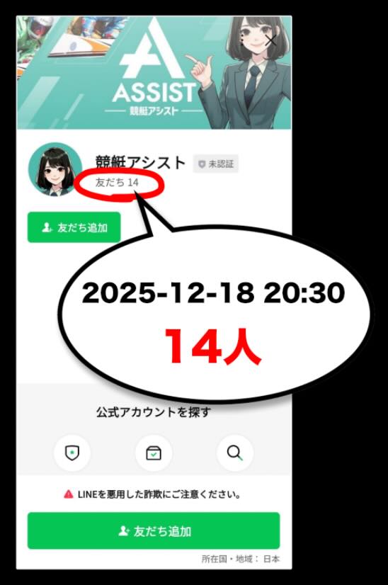 「競艇アシスト」という競艇予想サイトは、「LINEの友だち追加」によって会員登録を行う形式を採用しており、この仕組み上、現在の会員数を外部から比較的容易に確認できる特徴がある。
