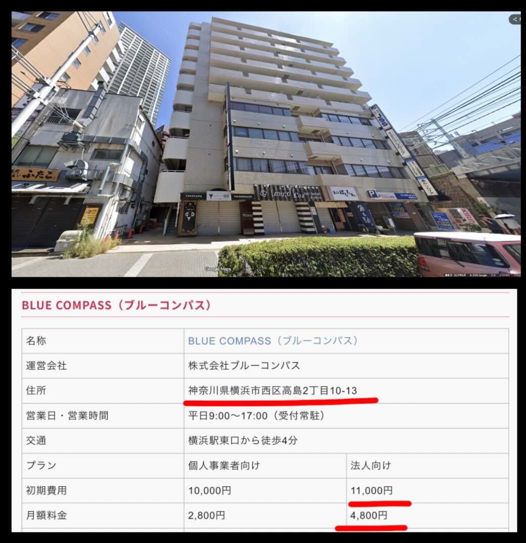 この住所には「横浜東口ビル」という建物が存在しており、さらに調査を進めると、同ビル内には「株式会社ブルーコンパス」が運営する、女性起業家向けのバーチャルオフィスが入居していることが確認できた。