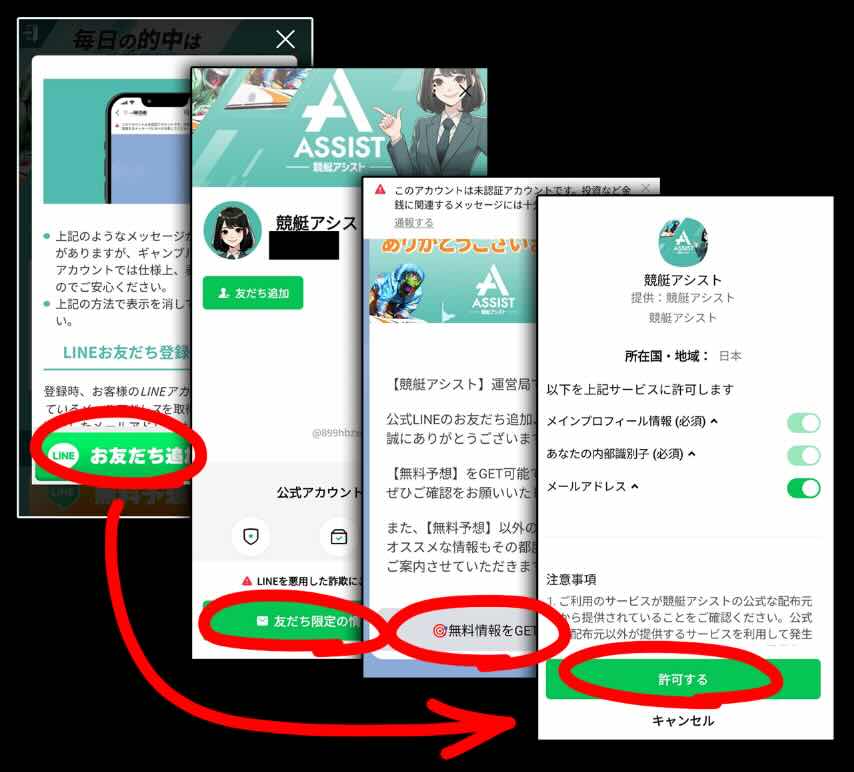 競艇アシストへの会員登録は、LINEの友だち追加のみだ。