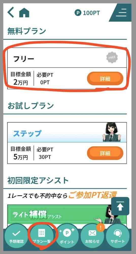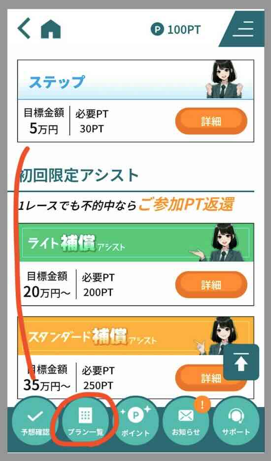 競艇アシストという競艇予想サイトが提供する競艇予想だが、競艇アシストの会員ページのメニューに「プラン一覧」とある。