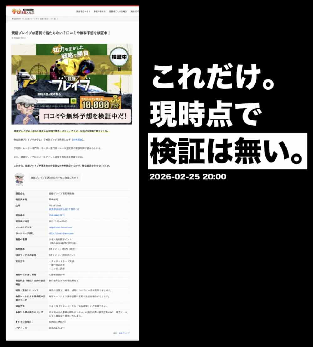 外部集客サイト「舟研」の検証記事は継続的に確認しているが、2月25日の午前中の時点では「競艇ブレイブ」の記事ページは確認できなかった。