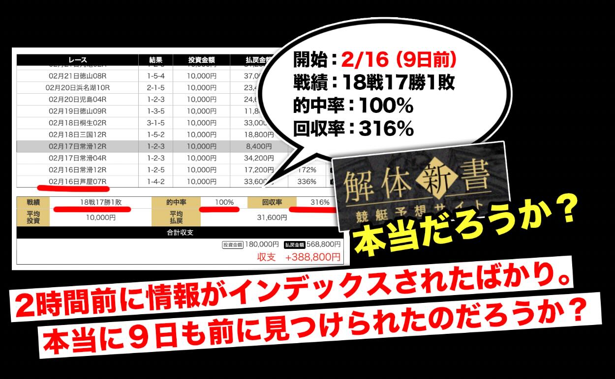 2月25日20時過ぎまで検索結果にはひとつも表示されていなかった外部集客サイトだが、「解体新書」を確認すると、すでに「競艇ブレイブ」の記事ページが公開されていた。