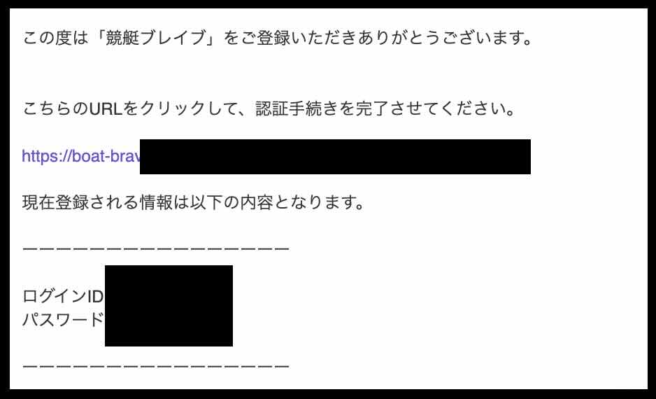 送られてきたメール内のリンクコードを押すと、登録完了となり、競艇ブレイブの会員ページにログインすることができるようになる。
