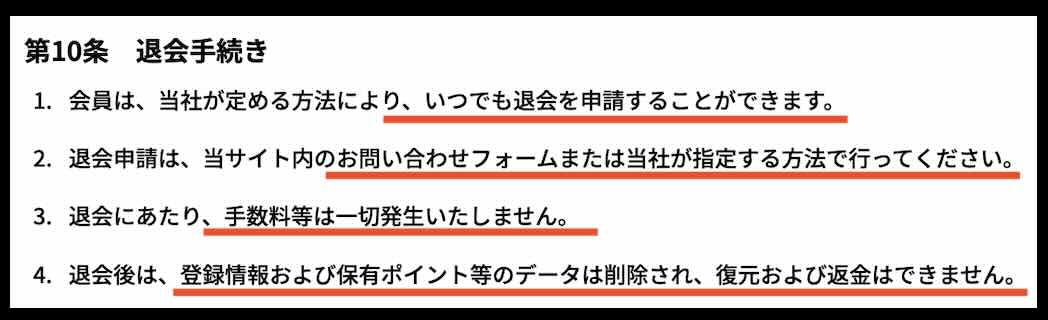 現時点では、「退会時に個人情報は消去する」との記載は確認できるものの、実際に削除が完了したことを利用者側で客観的に確認する手段は示されていない。