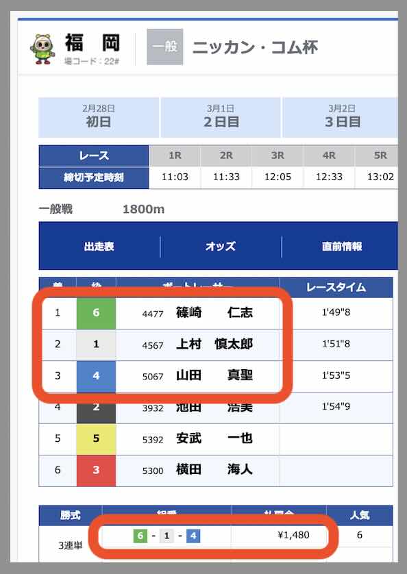 2レース目の福岡9Rは12.4倍の的中だった。