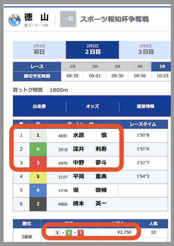6号艇の選手の徳山との相性も見抜いて見事に的中していた。