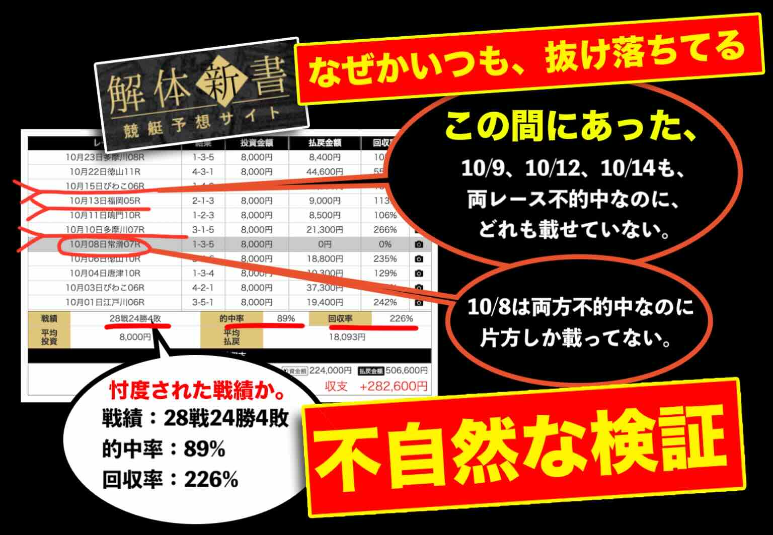 競艇検証.comによる検証結果では、29戦のうちわずか9勝、20敗という戦績で、回収率37%という実測データは、外部集客サイトによる“演出”に見られる高成績とは明らかに異なる。