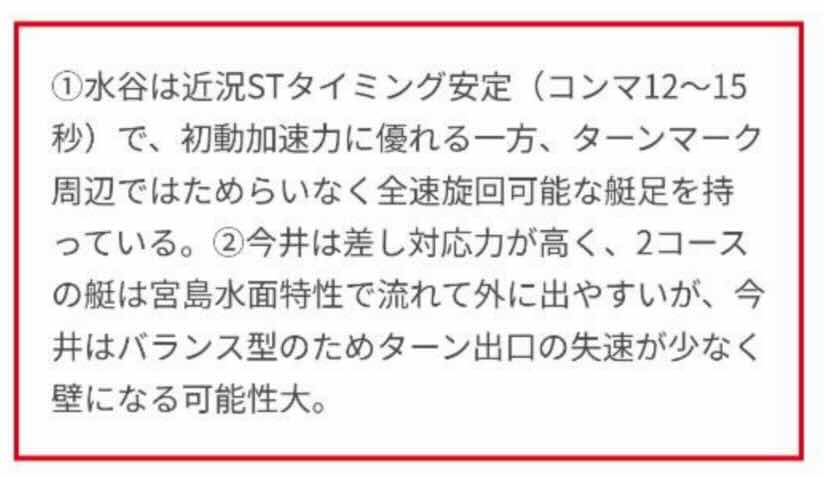 宮島8Rの見解を見ても、あたかも専門的な分析のように見せかけた文章構成だが、内容を精査すれば競艇で使われない表現が散見され、失笑モンである。